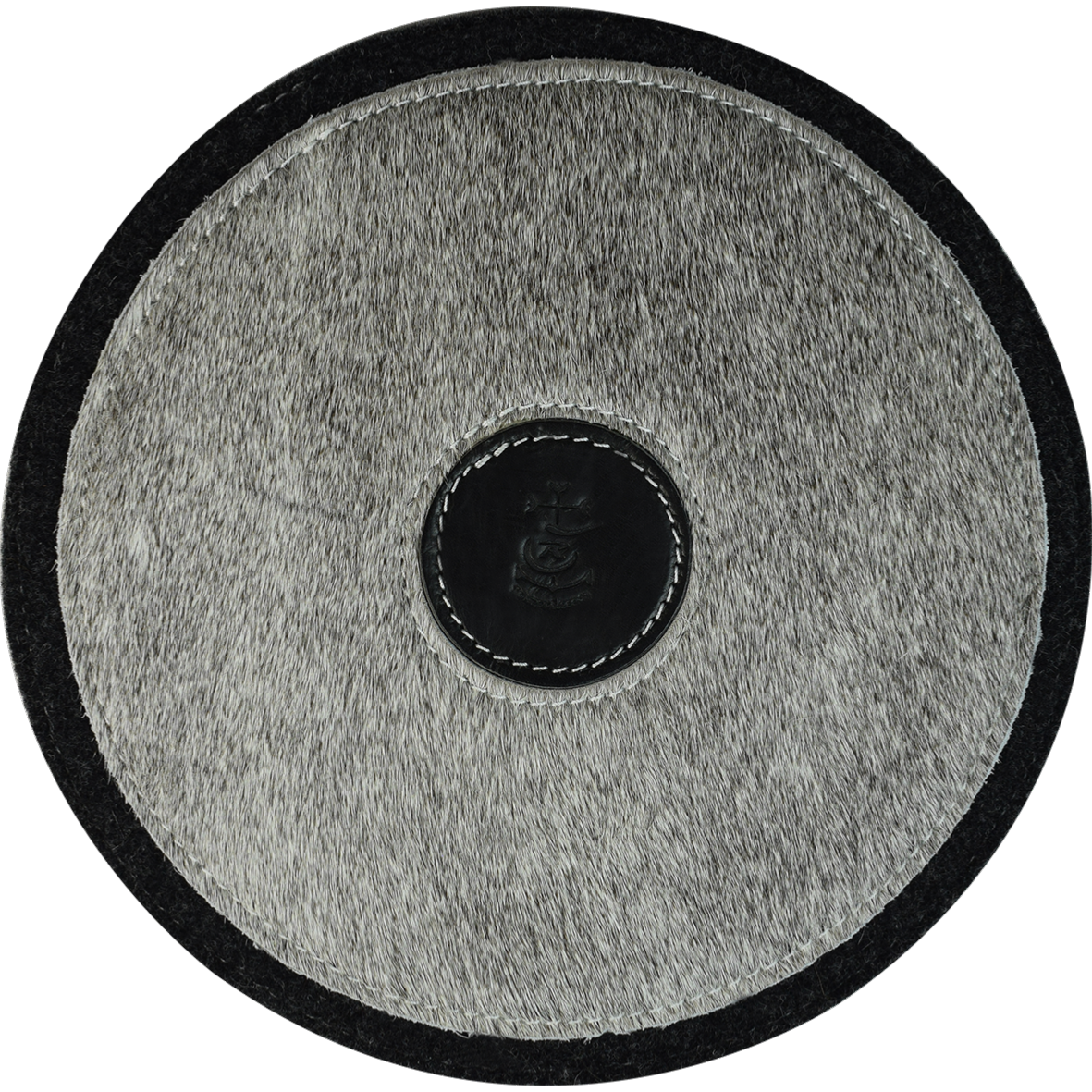Dessous de plat rond peau de vache, feutre et cuir