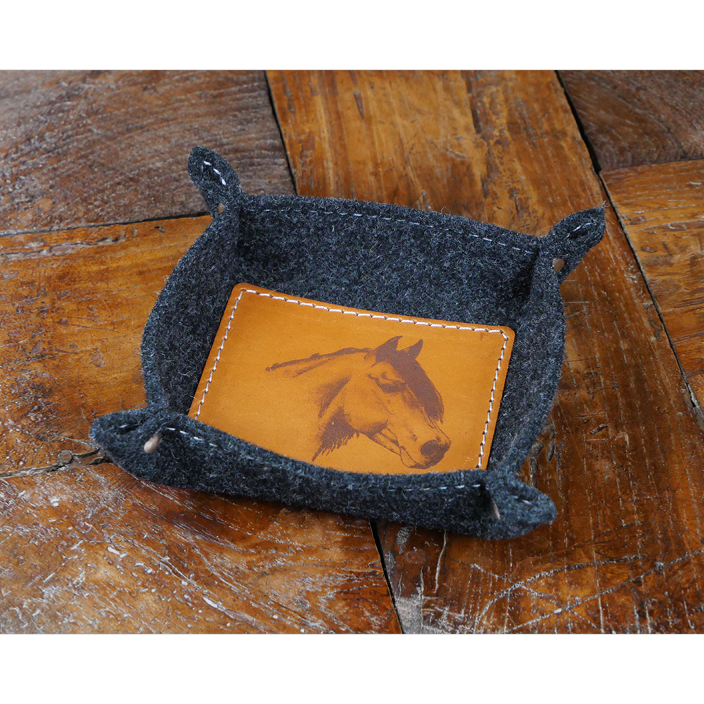 Retrouvez nos petits vide-poches en Feutre de Laine et Cuir Gravé, idéal pour faire un joli cadeau.